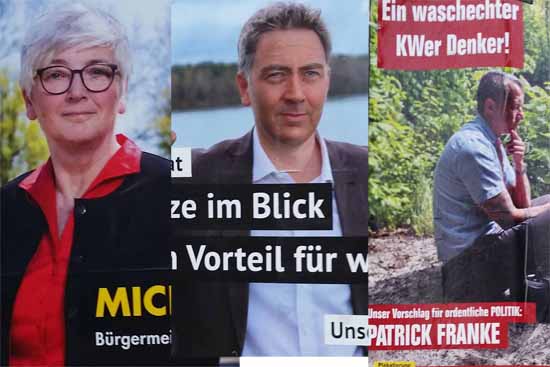Trübe war der Auftritt von Patrick Franke. Königs Wusterhausen solle „ein bisschen nach vorn kommen“, so beschrieb er seinen Plan für die Stadt. Franke sieht trotz seiner relativen Unbekanntheit die Chance auf den Bürgermeisterposten. Er sei ein „unbeschriebenes Blatt“. Ob ihn dieses Credo, seine Anti-Ennullat-Haltung und das Bekenntnis, er habe keine Lust an fünf Stunden Sitzung im Stadtrat teilzunehmen bei seinem Vorhaben hilft, wird man in drei Wochen sehen.